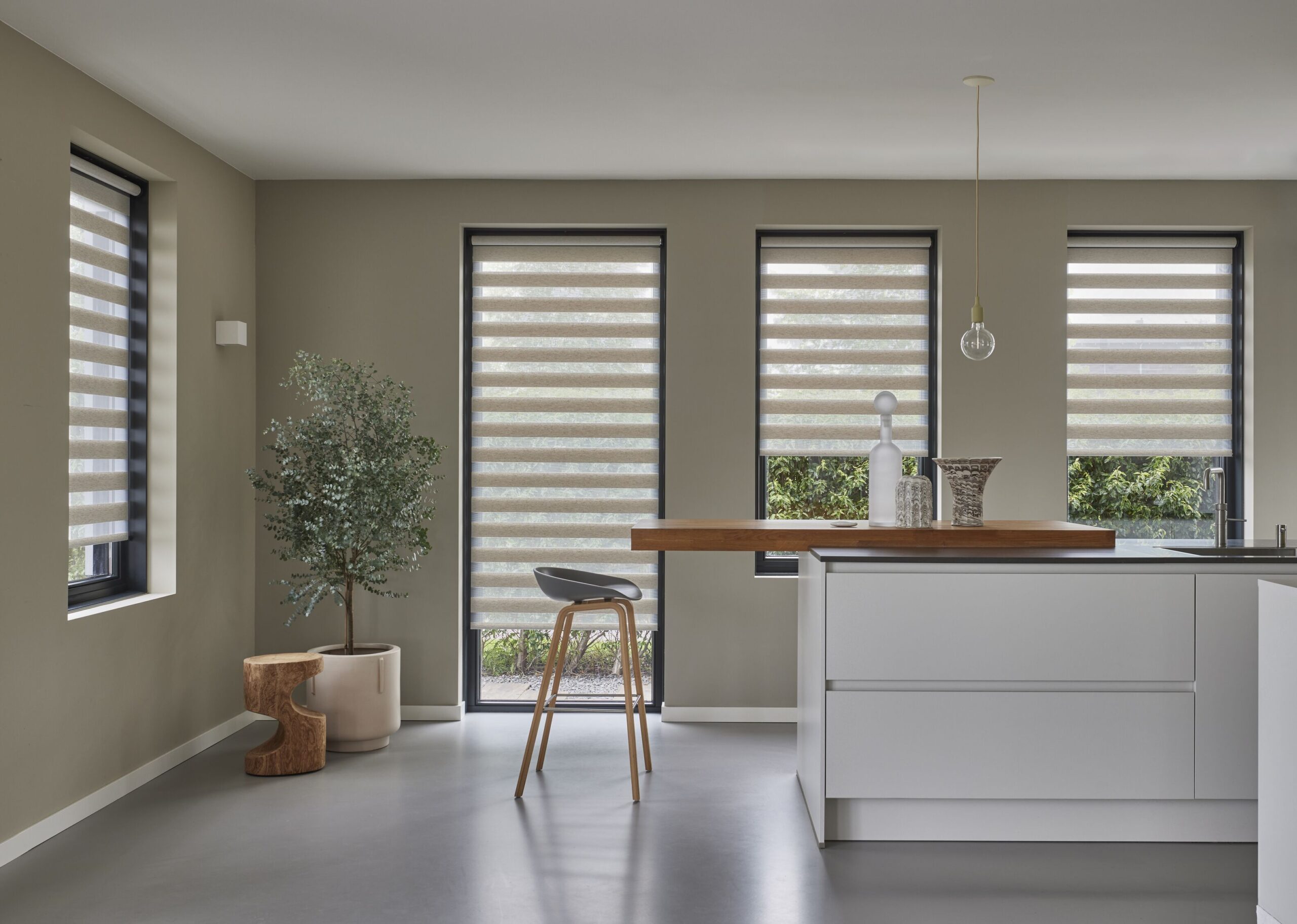 U kunt bij ons op maat gemaakte rolgordijnen bestellen van de merken Luxaflex®, Multisol en Lega. In de winkel bieden wij een ruim assortiment aan kleuren in verschillende stofsoorten. We hebben zowel standaard rolgordijnen als dubbele rolgordijnen waarmee u zelf kunt bepalen in welke stand u het rolgordijn laat hangen om zo de door u gewenste doorkijk te creëren.