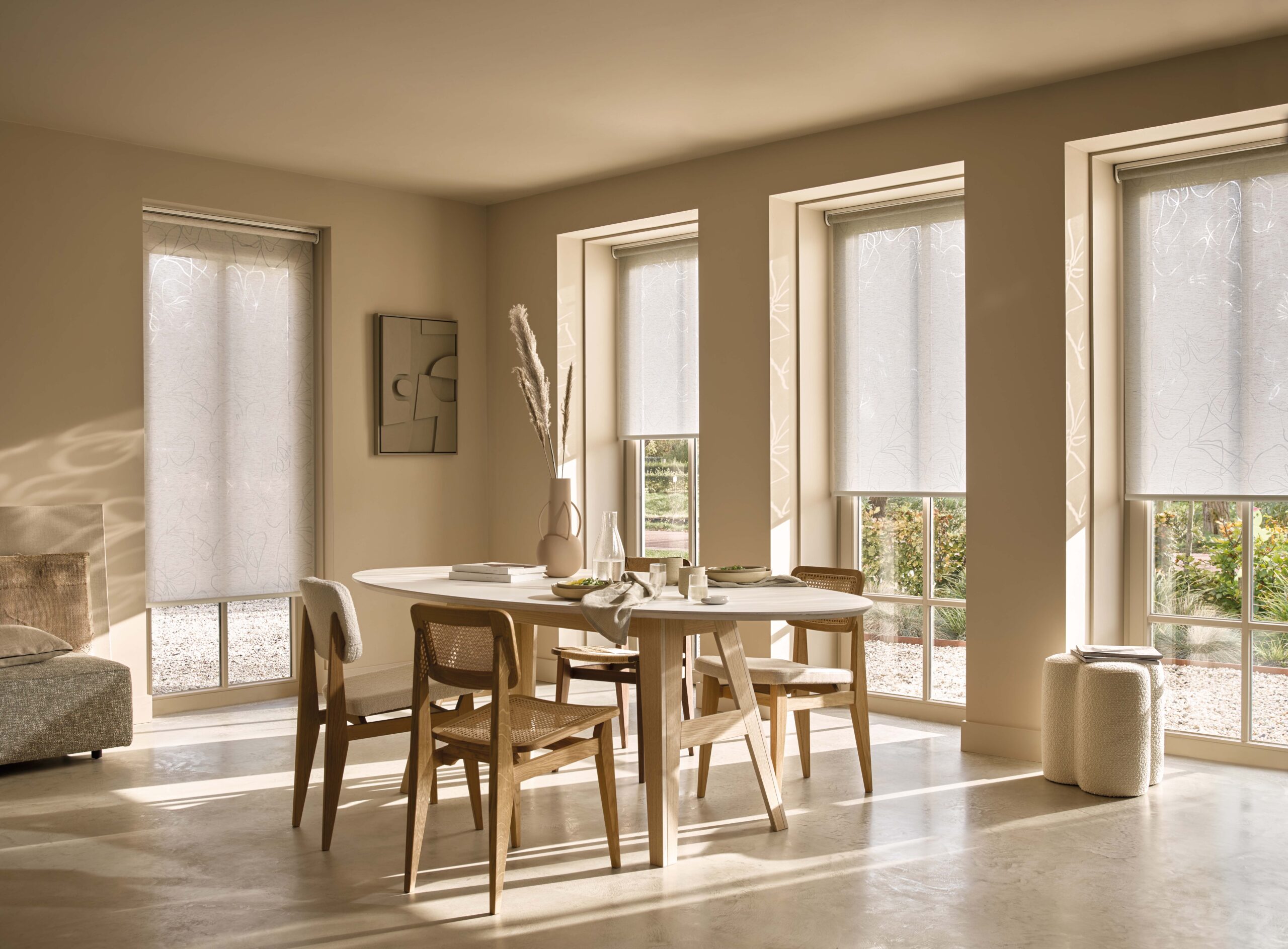 U mag altijd stalen meenemen om thuis te kijken wat mooi zal combineren bij uw inrichting qua kleuren en lichtinval.